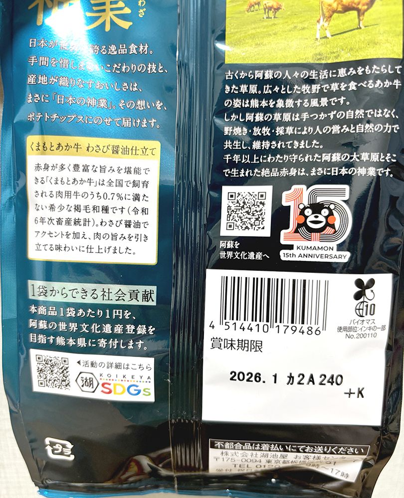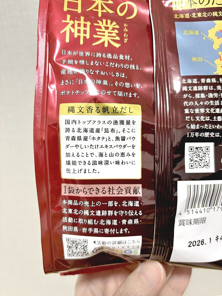 看他後面的介紹,買一包會有一円寄付給世界文化遺產跟保護繩文遺跡,
